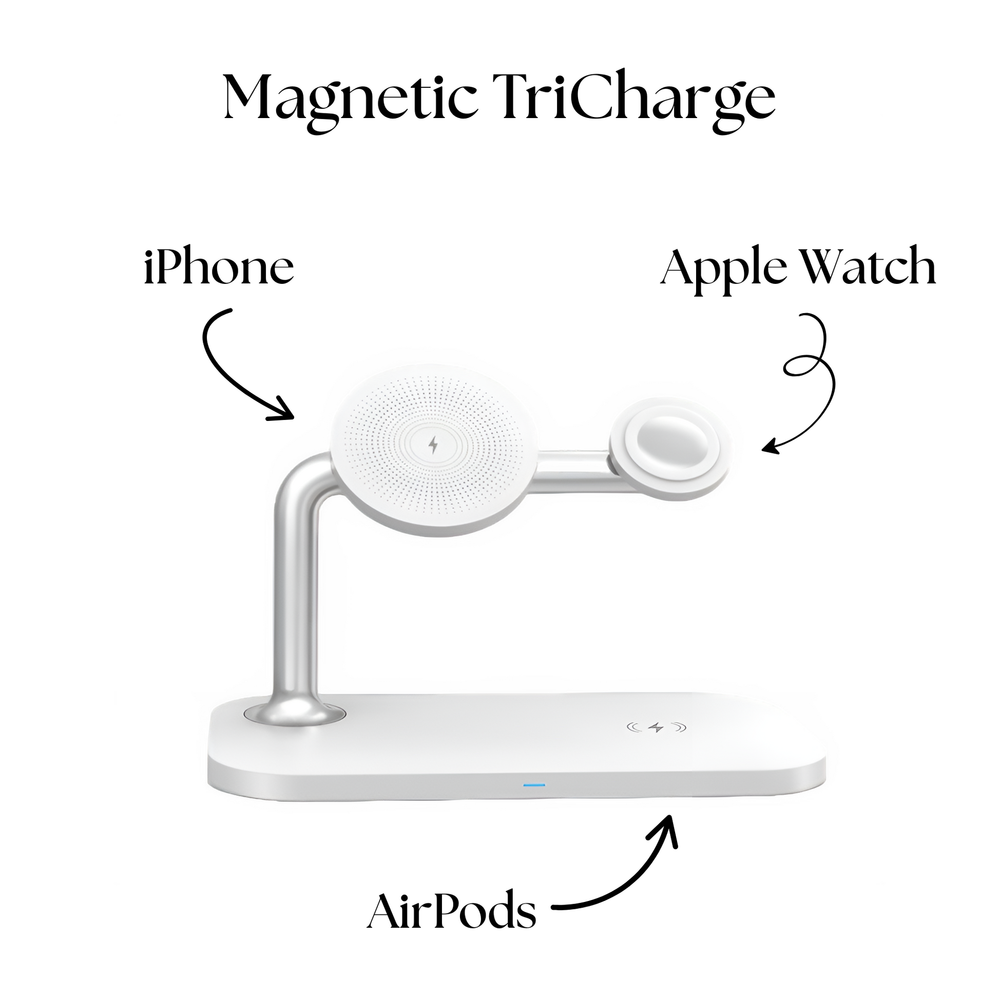 Despídete de los cables enredados y dale un upgrade a tu espacio con nuestro tricargador magnético 3 en 1. Diseñado especialmente para usuarios Apple, este cargador reúne en una sola base la comodidad, elegancia y eficiencia que necesitas en tu día a día.